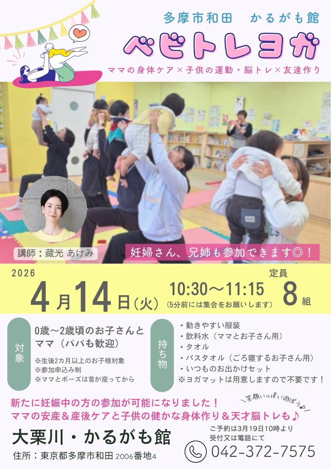 2026年4月 3日:終活サポートセミナー 5日:月例ウォーキング<乞田川の桜を見に> 14日:ベビトレヨガ 29日:和太鼓コンサート<和太鼓奏者 菅原光朗による太鼓と津軽三味線 三好のぶちかによるコンサート>
